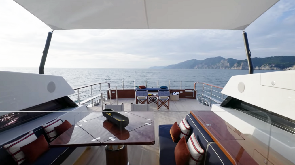 Une terrasse sur l’eau s’étend directement au-dessus de la mer, invitant à la détente au bord de l’océan. Pour ceux qui privilégient un style de vie plus extraverti, une configuration en plein air avec un pont arrière surbaissé le transforme en une scène dédiée à la vie côtière.